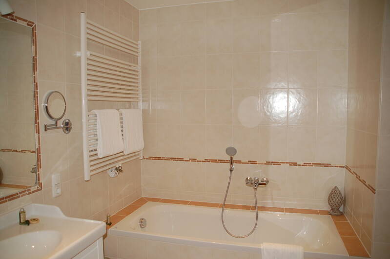 Suite 8 und 9 mit Badewanne und Dusche und separatem Wohnraum , Suite 10 mit Duschbad und separatem Schlafzimmer zusätzlich.